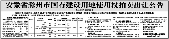 安徽省滁州市国有建设用地使用权拍卖出让公告