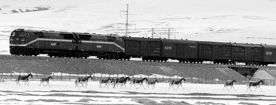 | 在“世界屋脊”青藏高原,举世瞩目的青藏铁路即将迎来第四个冬季。这条雪域“天路”安全运营3年多来,冻土路基总体稳定,沿线生态环境得到有效保护,强力助推了青海、西藏两省区经济社会发展。图为进藏列车与冻土路基下的成群藏野驴成为雪域高原上的美丽风景(10月24日摄)。新华社发 |