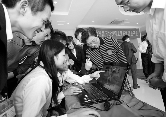 | 10月28日上午10时,中国南方纺织网上交易所在嘉兴市王江泾镇成立。随着卖方浙江拜联科技有限公司与买方嘉兴市智恩纺织有限公司第一笔18万元的纺织产品的成交入账,标志着南方纺织产品网上交易市场正式运行。 本报记者 邵全海 通讯员 吴桂潮 盛建生 摄 |
