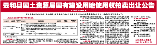 六、本次国有建设用地使用权拍卖会定于2009年11月19日9时在云和县招投标中心举行。