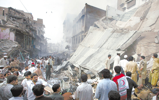 10月28日,人们聚集在白沙瓦的爆炸现场。 新华社发