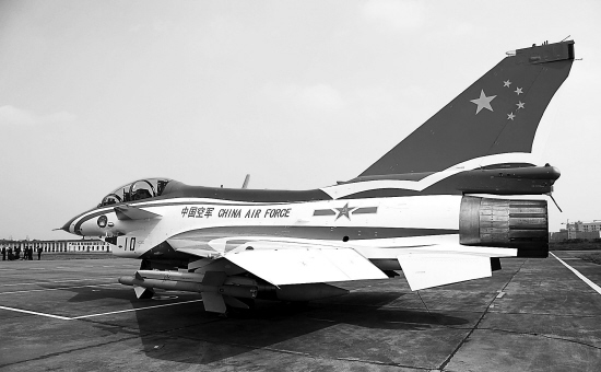 涂上蓝白红相间“新装”的歼-10飞机。 新华社发