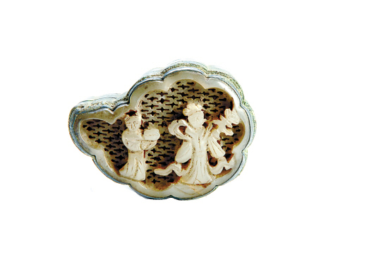 宋代玉雕银盒。