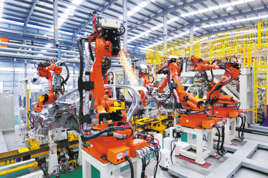 临海做强做大五大主导产业,图为汽摩行业龙头的吉利集团吉利熊猫自动化生产线。