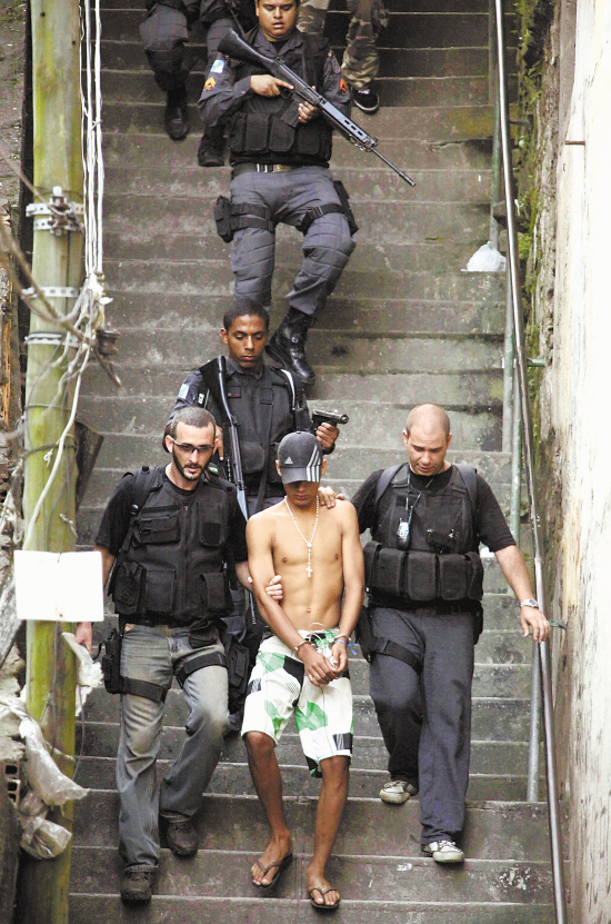10月21日,在里约热内卢莫罗·圣阿马鲁贫民窟的一次行动中,警察逮捕一名被怀疑为贩毒团伙成员的男子。 新华社发
