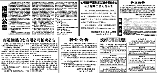 受委托,本公司定于2009年11月10日14时在杭州市文晖路97号三楼会议室举行拍卖会,现将有关事宜公告如下: