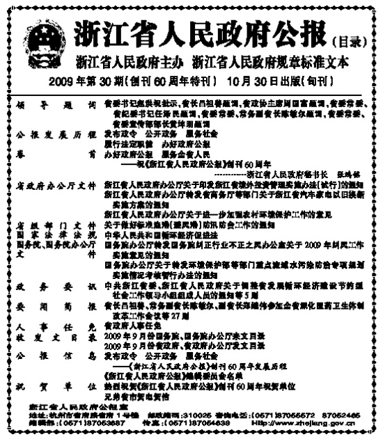 编辑部:(0571)87053687 传真:(0571)87054639 Http://www.zhejiang.gov.cn
