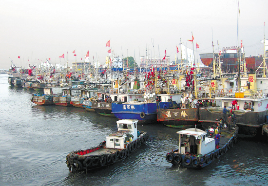 昨日,受北方强冷空气影响,我省沿海海面刮起8至10级偏北大风,有关部门及时发布预告,提醒近海作业渔船回港避风避险。图为台州市礁山港内停满了回港避风的渔船。