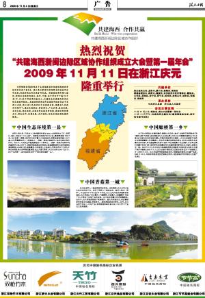 热烈祝贺“共建海西浙闽边际区域协作组织成立大会暨第一届年会”2009年11月11日在浙江庆元隆重举行