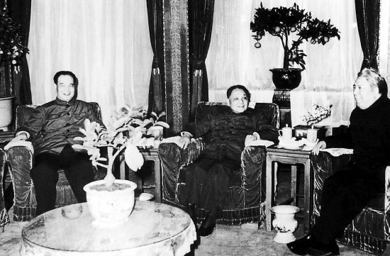 1983年2月,邓小平同志与时任中共浙江省委副书记的王芳同志(左)等交谈。