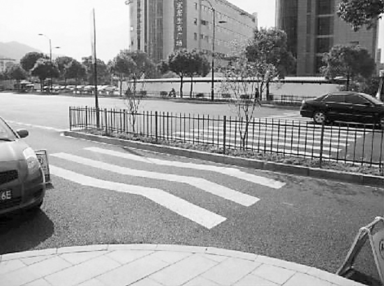 这是网上曾有网民上发的杭州最牛人行道,记者现场看到,市政部门已经将栅栏拆除改进了。