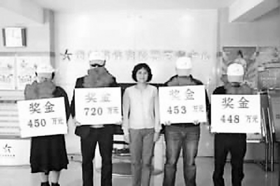 | 河南3.6亿彩票大奖得主迄今身份成谜。网上掀起国内大奖得主领奖着装大比拼。 在网民贴出的领奖者照片中,贵州4个中奖者领奖时头戴棒球帽,胸前戴朵大红花,为了不被拍到正面,全都低下了脑袋,被网民称为“最沮丧领奖者”。“领奖该高兴啊,从这图来看,怎么看都是很沮丧。”网民揶揄说,下次再有中奖者,干脆搞个蒙面舞会。 网民经对比发现,国内众多的得奖者中,造型几乎都是头戴帽子、大墨镜、大口罩,虽然有时会有一些小改动,比如把帽子换成一顶假发,或者用个头套直接把脑袋罩住,不过中奖者们似乎一直在延续“前辈”的装扮:看不见眼睛、看不见嘴,脸部面积尽可能不见光。而国外彩票巨奖得主则坦然公示信息。可见国内彩票知情权与隐私权的博弈仍在继续。 |