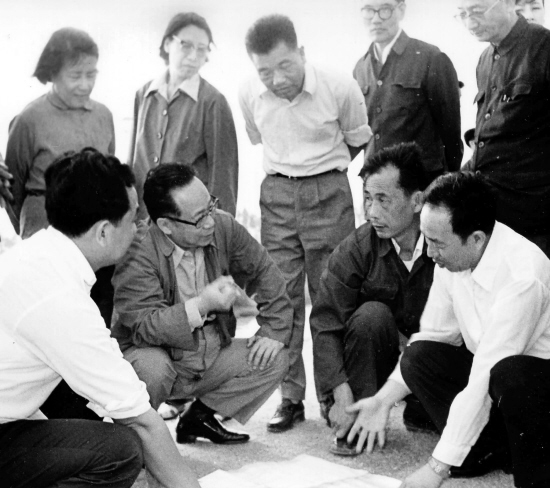 1983年,谷牧同志在汕头考察基础设施建设情况。 新华社发