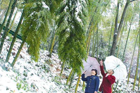昨日,位于德清县西部的国家级风景名胜区莫干山,迎来今冬首场大雪。 通讯员 小绍兴 摄
