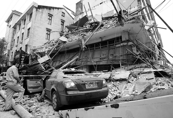 11月17日,苍南县龙港镇正在装修的两间5层连体落地房发生坍塌,正在里面的7名装修工人在坍塌前一刻逃出民房,幸运地逃过一劫,事故未造成人员伤亡。经初步调查,造成坍塌的原因是装修时为扩大空间,拆除了房屋的部分承重墙体所致。郑鹏 摄