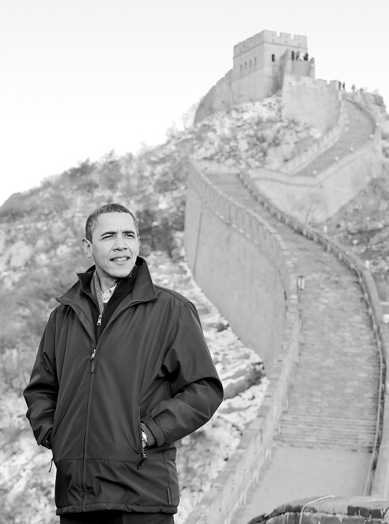 11月18日,美国总统奥巴马在北京游览八达岭长城。