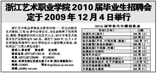 浙江艺术职业学院2010届毕业生招聘会