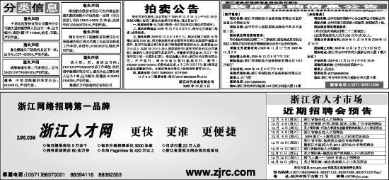 12月 4日(周五) 浙江省营销、外贸、管理、财务、文秘、广告专场招聘会