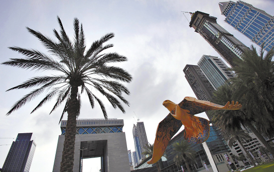 这是11月30日在阿拉伯联合酋长国迪拜拍摄的迪拜国际金融交易所大楼(左二)。 新华社发