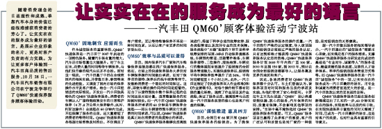 —— 一汽丰田 QM60’顾客体验活动宁波站