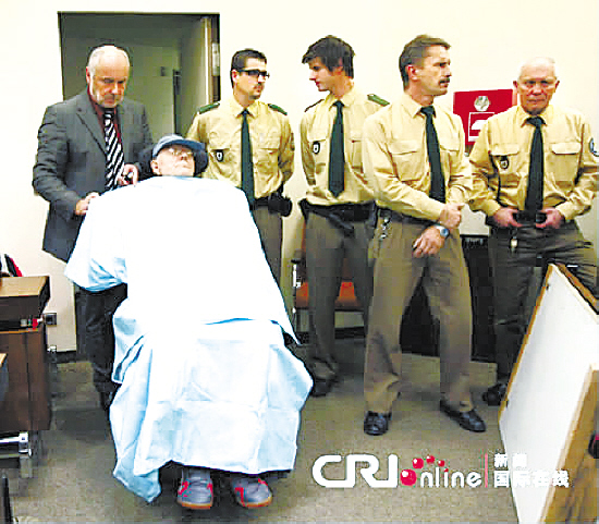 八十九岁的纳粹疑犯德米扬鲁克坐在轮椅上出庭受审。