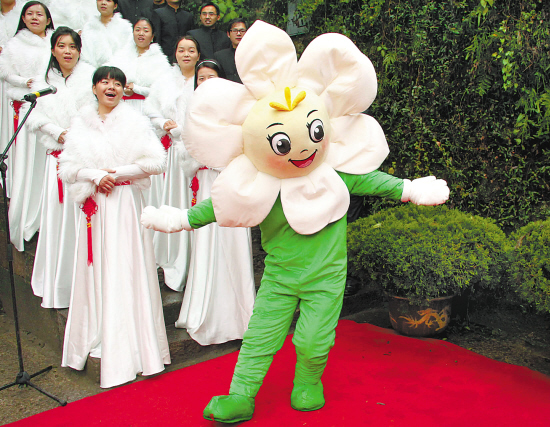 | 12月9日,第六届世界合唱比赛组委会在绍兴发布吉祥物 “合合”。这次比赛明年7月在绍兴举行,来自80多个国家和地区的400多个合唱团、2万多名选手参赛。该吉祥物以绍兴市花——兰花为原型,寓“合唱、合力、合作”之意。 本报记者 金敖生 摄 |