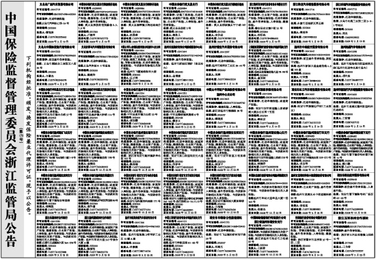 中国保险监督管理委员会浙江监管局公告
