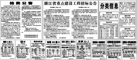 一、竞买咨询、展示、登记时间:从即日起至2009年12月28日下午4时止,有意竞买者请自行前往看样,保证金请于12月28日下午4时前支付到法院指定账户(户名:浙江省宁波市中级人民法院执行款专用户,开户行:招商银行宁波分行营业部,账号:574903273210301),以资金到账之日为准。登记时请随带有效证件及法院开具的保证金交纳收据到本公司办理竞买登记手续(双休日除外)。