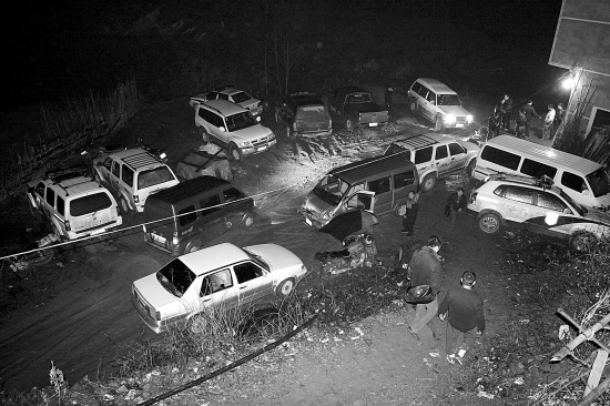 12月12日,几辆警车停在湖南省安化县高明乡重大刑事案件事发现场外。 新华社发