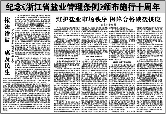 纪念《浙江省盐业管理条例》颁布施行十周年