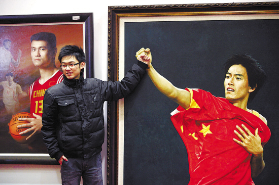 | 12月17日,参观者与展览中的油画作品合影。当日,“祖国为你骄傲”庆祝中华人民共和国成立六十周年暨中国百年体育明星风采油画大展在北京开幕。这次画展展出名家原创油画200多幅,以独特的艺术形式展示了中国运动员在历届奥运会和百年世界体育大赛中的辉煌成就。 新华社记者 费茂华 摄 |