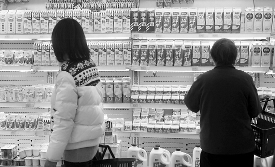 杭州某超市鲜奶柜台前,市民正在选购奶制品。 本报记者 钟昊 实习生 陈燕 摄