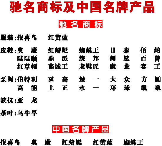 报喜鸟 奥 康 红蜻蜓 红黄蓝 蜘蛛王