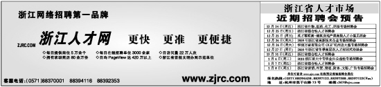 1月 8日(周五) 浙江省营销、外贸、管理、财务、文秘、广告专场招聘会