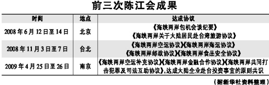 2009年4月25日至26日 南京 《海峡两岸空运补充协议》《海峡两岸金融合作协议》《海峡两岸共同打击犯罪及司法互助协议》,达成大陆企业赴台投资事宜的原则共识