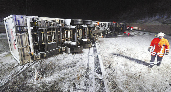 12月22日,救援人员在德国一条高速公路的车祸现场忙碌。由于持续降雪低温导致高速公路结冰,交通事故频发。新华社发