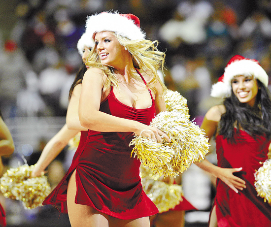 12月22日,奇才拉拉队员在比赛间隙表演。当日,在2009-2010赛季NBA常规赛中,华盛顿奇才队主场迎战费城76人队。 新华社发