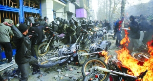 12月27日,在伊朗首都德黑兰,警察与抗议者发生冲突。 新华社发