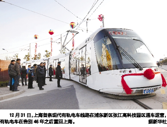 12月31日,上海首条现代有轨电车线路在浦东新区张江高科技园区通车运营,有轨电车在告别46年之后重回上海。 据新华社