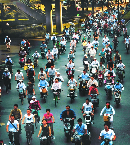 这张照片拍摄于2008年7月15日7时40分的杭州街头,十年后,电动车大行其道。