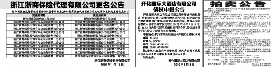 经中国保险监督管理委员会浙江监管局批准,浙江浙商保险代理有限公司及辖属分支机构名称变更如下: