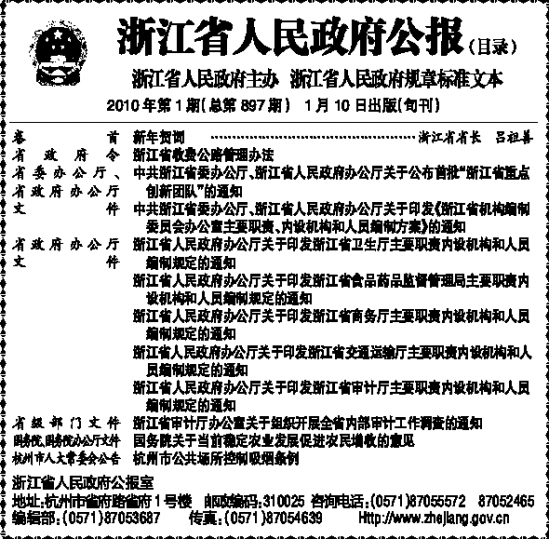 编辑部:(0571)87053687 传真:(0571)87054639 Http://www.zhejiang.gov.cn