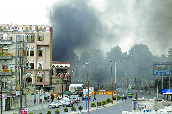 2009年9月17日,位于也门首都萨那的美国驻也门大使馆上空浓烟弥漫。