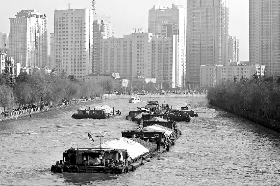1月12日,一个运煤船队行驶在京杭运河杭州段。近日连续受到北方强冷空气影响,杭州对煤炭的需求也与日俱增,相关部门预计在春节来临前将迎来煤炭运输高潮。 通讯员 骆晓磊 摄