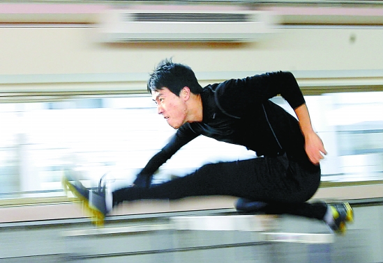 1月12日,刘翔在训练中。当日,男子110米栏国家队在上海莘庄基地进行了冬训以来的第二堂公开课。据刘翔介绍,冬训三周以来,技术和节奏接近较佳状态,速度和力量也比以前更强了,同时对自己整个冬训表示满意。 新华社记者 凡军 摄