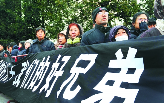 群众准备进入礼堂送别八位烈士。 新华社发