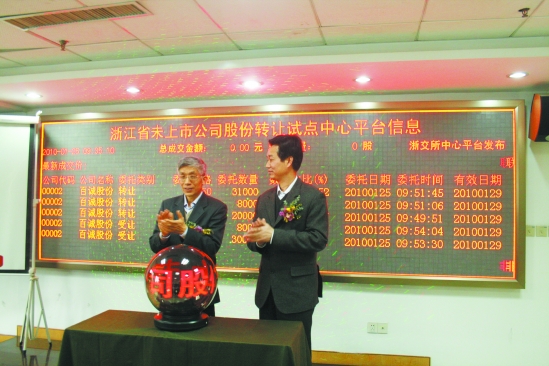 2010年1月25日,浙江省未上市公司股份转让试点在浙江产权交易所交易大厅正式启动。