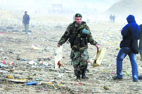 ③1月25日,搜救人员在贝鲁特以南的海岸边发现飞机残骸。新华社发