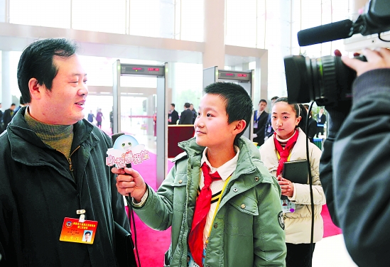 1月25日,省政协十届三次会议在省人民大会堂隆重开幕。小记者正在作现场采访。
