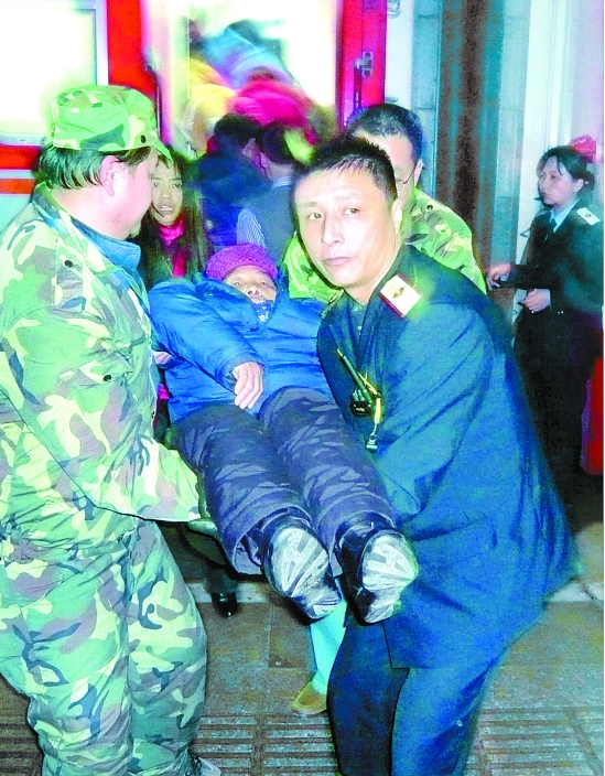 1月30日晚,从上海南开往长沙的K137次列车上,71岁老太太胡爱莲突发疾病。在铁路工作人员帮助下,旅客被及时送往金华某医院抢救。 葛跃进 摄